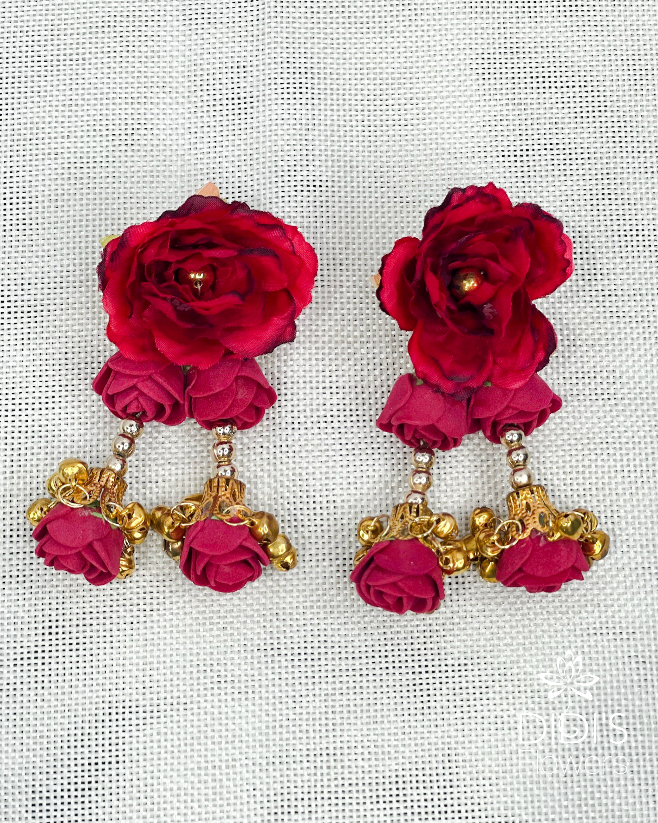 Silk earrings for brides, bridal jewellery, wedding day, artificial flowers, Indian weddings, luxury flowers, unique weddings, rosettes flower