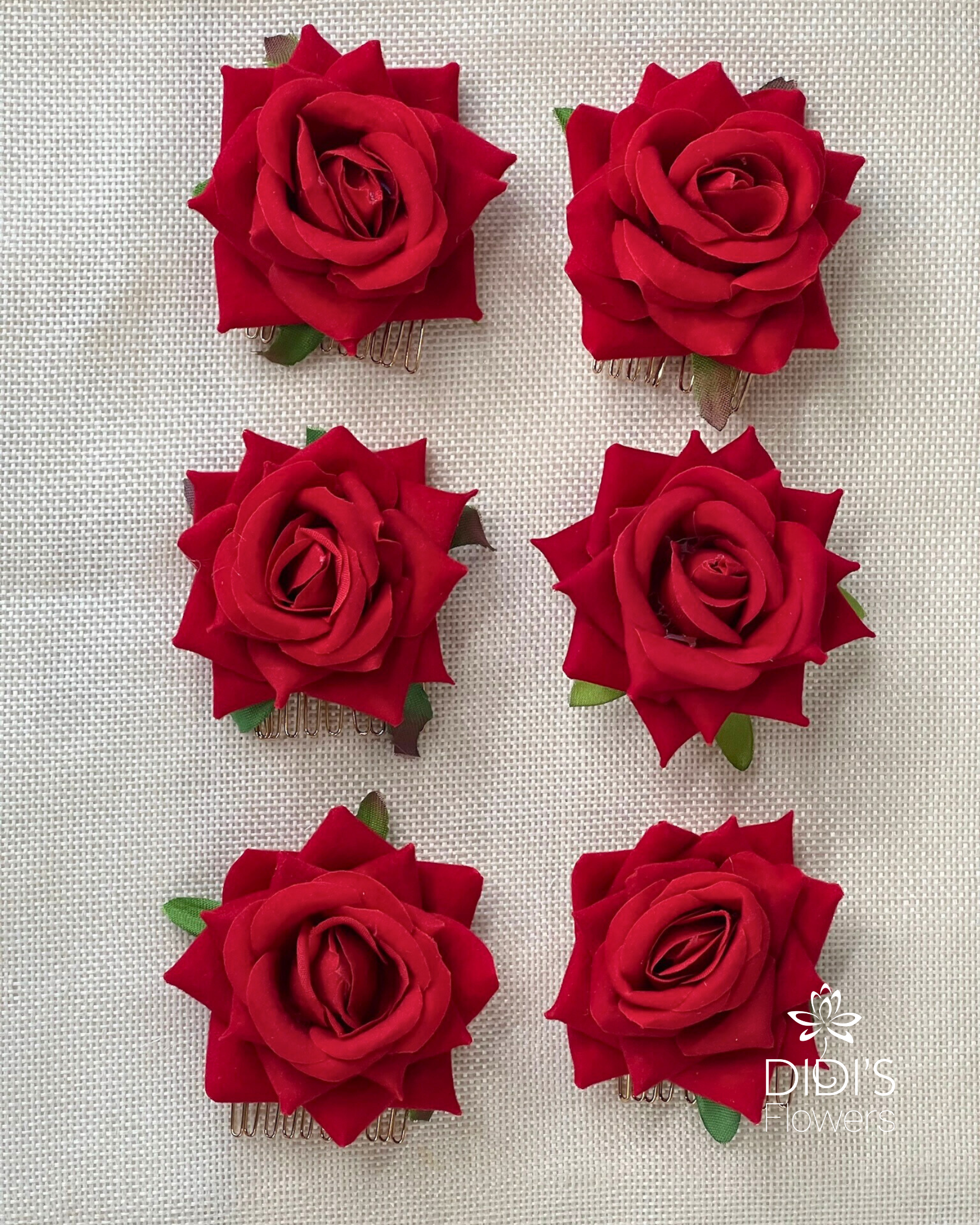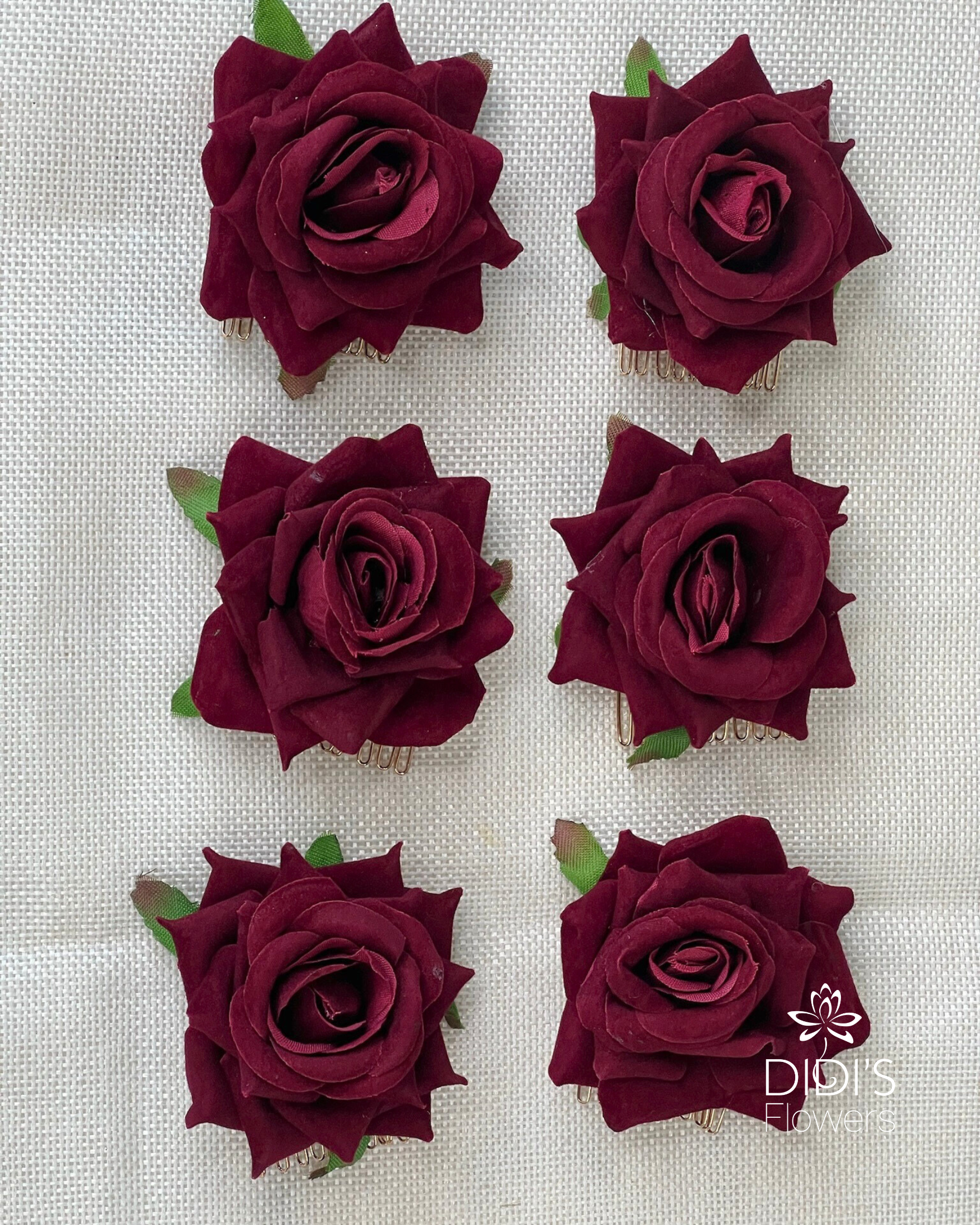 Our mini rose hair clips add effortless floral elegance to any look. Made with care in white, red, pink, and burgundy, these dainty clips are perfect for weddings, special events, or daily wear—making them a charming keepsake or gift.